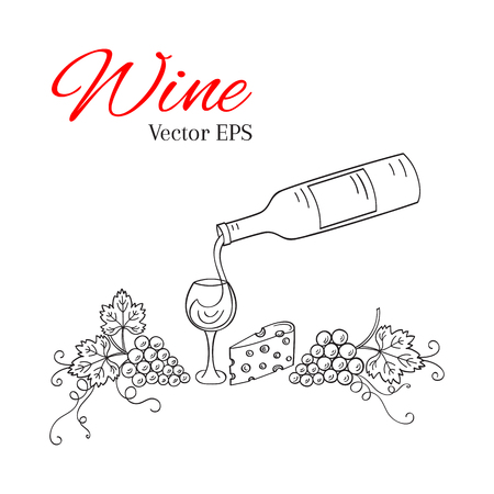 ワインの瓶 ガラス ブドウはベクトル イラスト手描き落書きスケッチ 白地に分離です ワインの背景 のイラスト素材 ベクタ Image