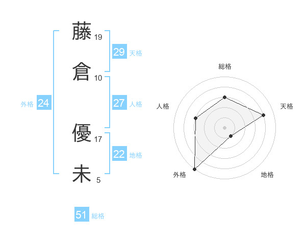 藤倉 優未さんの名前の鑑定結果は 姓名判断ネット